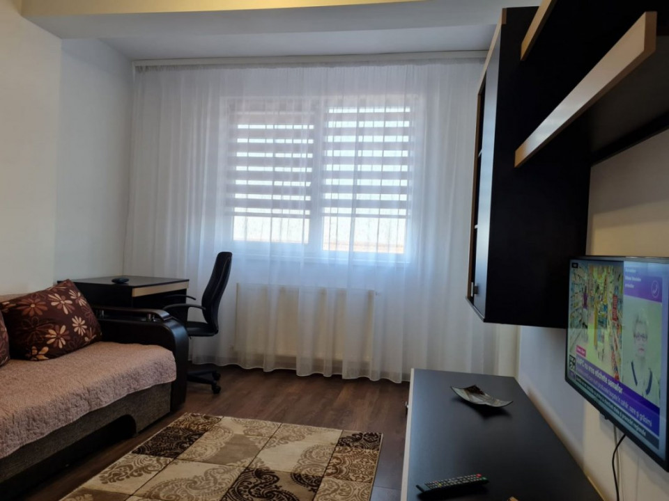 Garsoniera se inchiriaza complet mobilata si utilata, televizor, wi-fi, masina de spalat rufe, aer conditionat, centrala proprie.