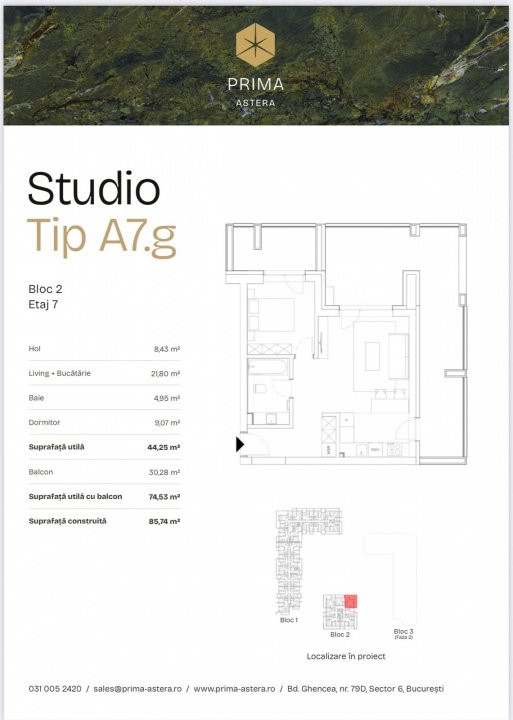 Vă propunem spre vânzare 4 unități locative în cadrul proiectului Prima Astera, un ansamblu rezidențial aflat în plină construcție, cu finalizare estimată la 01.11.2026, în zona Ghencea, lângă Stadionul Steaua.