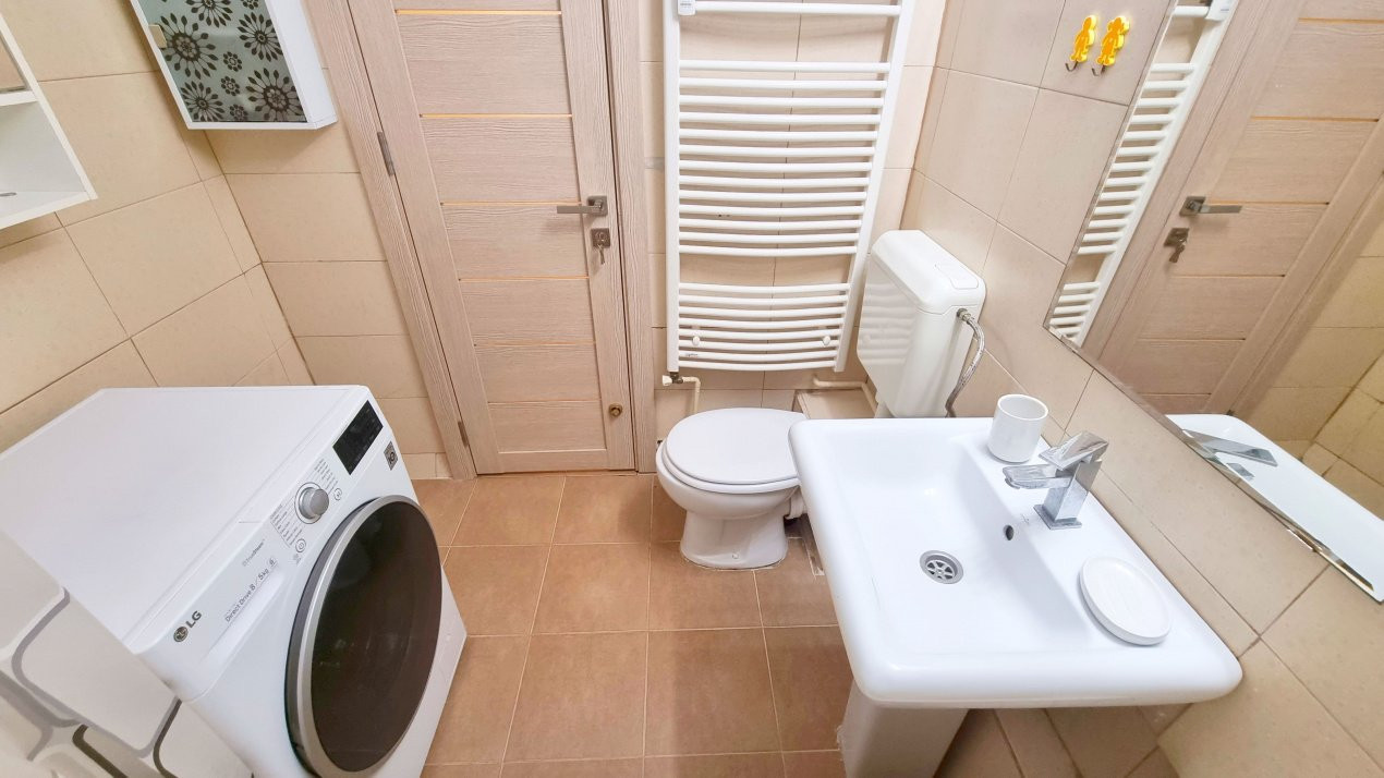 Blocul de pe strada Dumbrava Noua de la numarul 10, a fost construit in anul 1982 si reabilitat recent in anul 2023, este un bloc cu sase apartamente pe nivel si cu doua lifturi pe scara. In acest bloc este disponibil la vanzare la etajul 5, acest apartament de doua camere in suprafata totatala de 51,14 mp si suprafata utila de 47,68 mp. Este un apartament luminos, confortabil, cu ferestrele orientate catre Vest si impartire decomandata. Livingul spatios in suprafata de 17 mp are acces catre balconul apartamentului, bucataria este situata in centul apartamentului, fiind inconjurata de catre balcon in partea din fata iar pe laterale se afla dormitorul, livingul si holul principal al apartamentului.