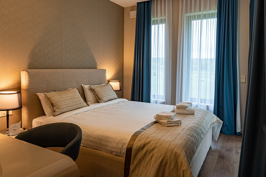 – Spațioase, cu 1–2 dormitoare, balcoane generoase, ferestre largi și înălțime ~3 m. Priveliști spectaculoase către fairways. Ideal pentru investitori și familii.