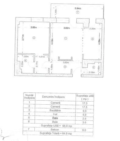1 Apartament cu 2 camere (56 + 9 mpu)