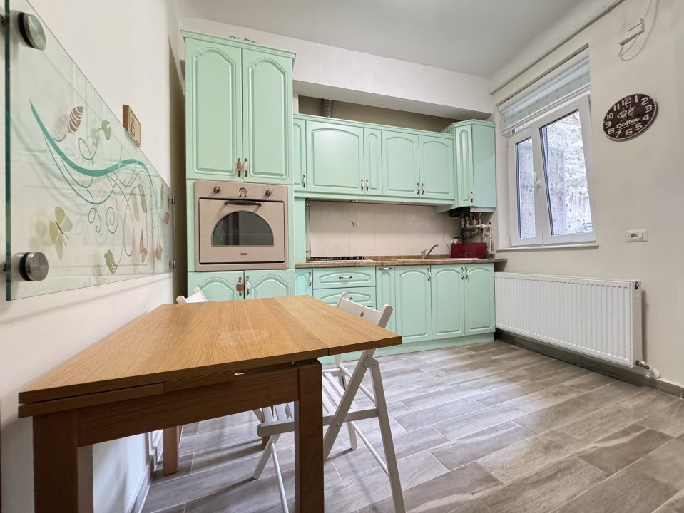 Renovarea completă, realizată în 2018 „de la cărămidă”, a inclus schimbarea instalațiilor electrice și sanitare, precum și o izolare minuțioasă cu vată bazaltică – detalii care asigură nu doar eficiență energetică, ci și confort fonic remarcabil.