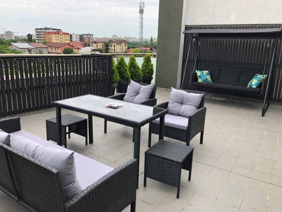 Alcatuit din living, zona de luat masa, dormitor si dependinte, apartamentul este semidecomandat, suprafata totala 68 mp plus terasa de 49 mp, suprafata construita 135 mp.