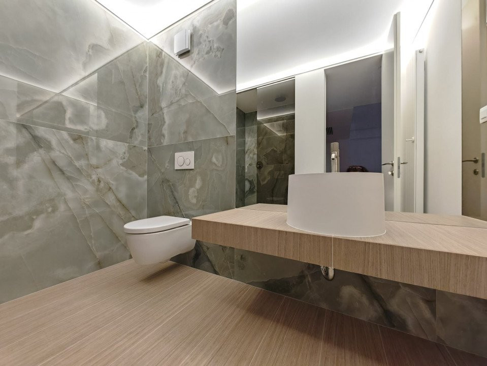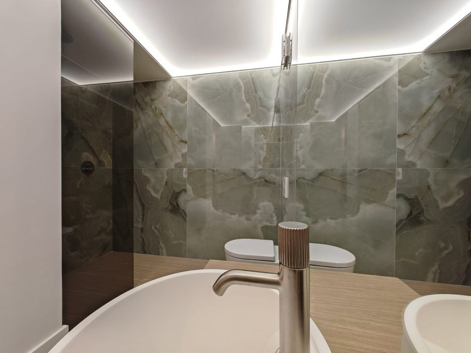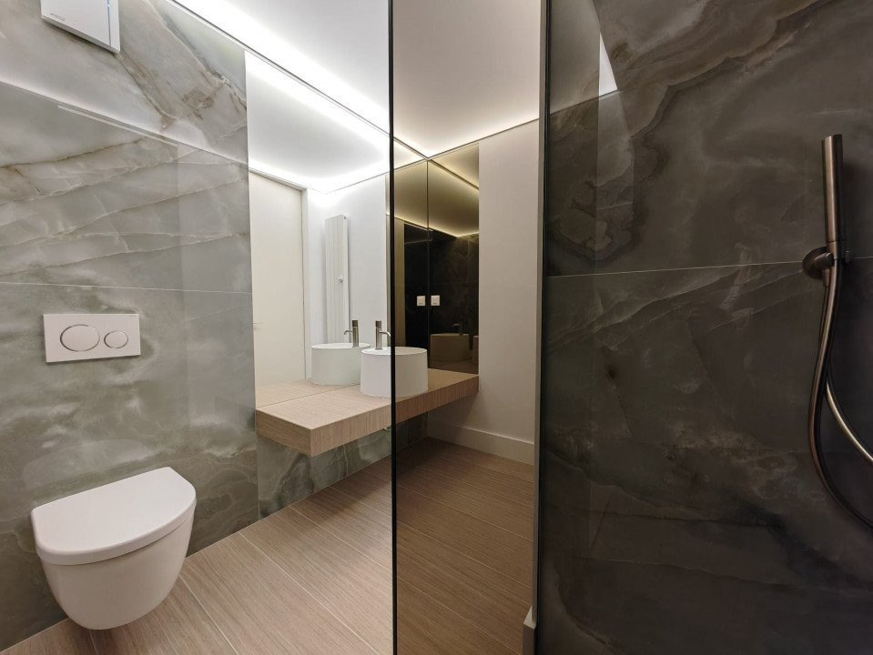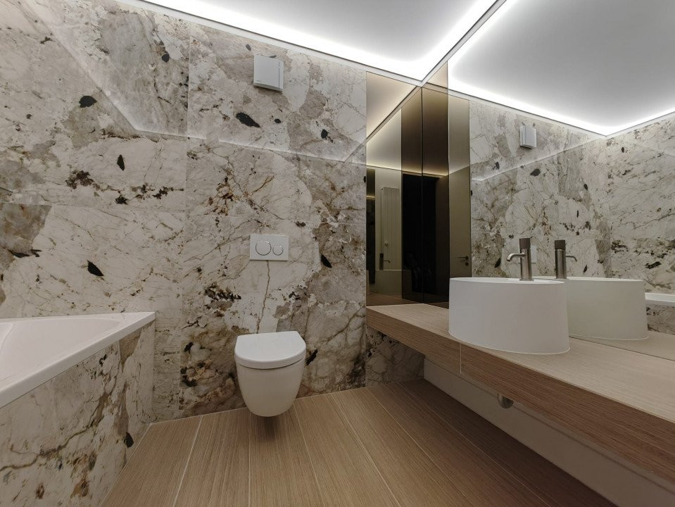Finisaje premium: parchet din lemn natural, încălzire în pardoseală, băi placate cu marmură, sistem de climatizare integrat