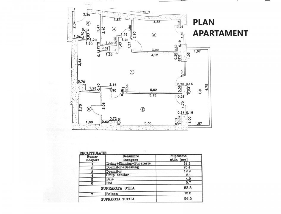 Suprafață totală: 96.5 mp, incluzând terasa de 13,2 mp
