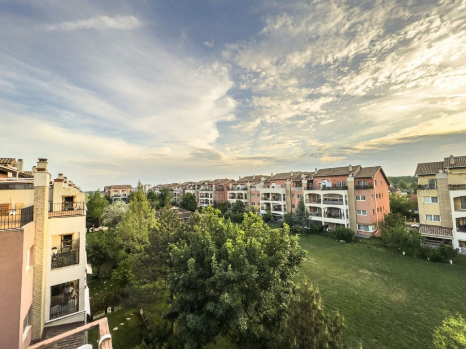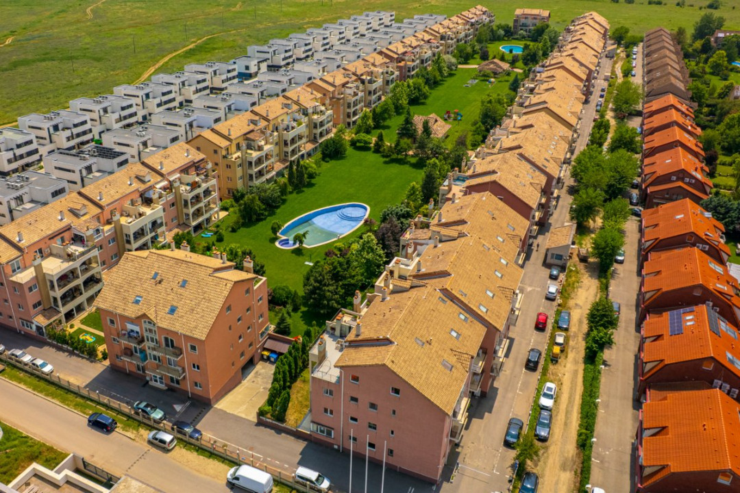 Vedeta apartamentului? Terasa generoasa de 42 mp, cu vedere spre curtea interioara a complexului – un loc verde si linistit. Complexul rezidential are 12.000 mp de spatii verzi, un loc de joaca pentru copii si doua piscine – ideale in zilele toride de vara. Practic, ai un mini-resort chiar la tine acasa.