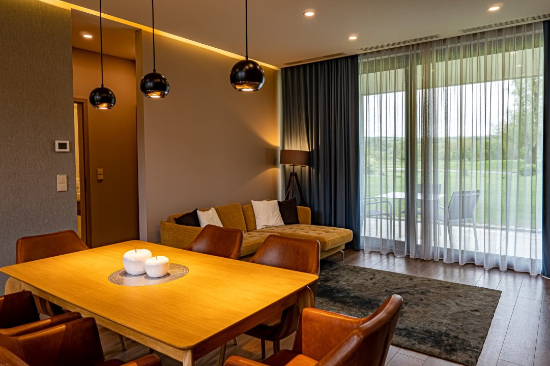 – Spațioase, cu 1–2 dormitoare, balcoane generoase, ferestre largi și înălțime ~3 m. Priveliști spectaculoase către fairways. Ideal pentru investitori și familii.