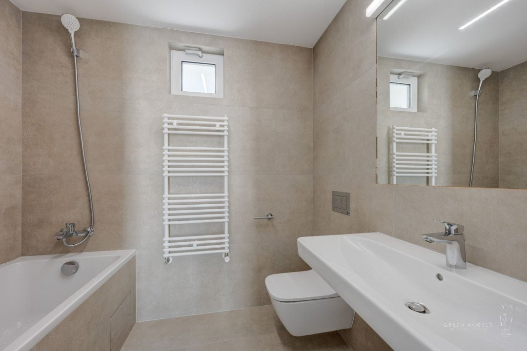 Bucătăriile sunt închise, fiecare apartament este dotat cu centrala proprie, încălzirea se face prin pardoseala, sistemul de aer condiționat este integrat, fără aparate la vedere, toate geamurile au jaluzele de aluminiu, exterioare, asta ca sa menționez doar câteva dintre avantajele acestor apartamente.