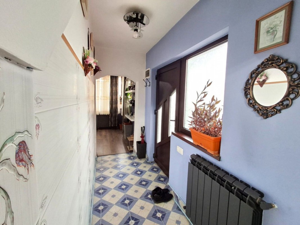 Casă cu Parter și Etaj, construită în anul 2008, cu structură de rezistență din beton și zidărie din cărămidă, având o suprafață totală de 130 mp. Casa beneficiază de o instalație electrică și sanitară de calitate superioară, iar acoperișul este realizat cu tablă Lindab, având pod izolat cu acces direct, de asemenea, este izolată pe exterior pentru un confort termic ridicat. Casa dispune de centrală electrică cu calorifere, oferind un confort termic optim. Este complet mobilată și utilată. De asemenea, casa beneficiază de Garaj cu deschidere automatizată cu telecomandă, oferind un plus de confort și acces facil direct din stradă. Curtea este foarte generoasa, 80 mp liber, oferind un spatiu ideal pentru relaxare, completat de un foisor confortabil. Locul perfect pentru a te bucura de momente de liniste si de natura.
