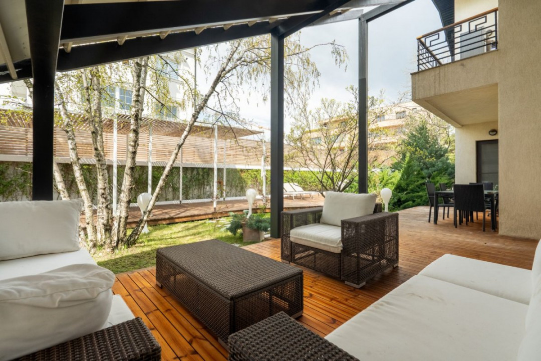 Pozitie excelenta in complexul rezidential Traian, pe Iancu Nicolae 82-84, cu acces rapid catre scolile internationale si facilitatile zonei de Nord. Vila eleganta, cu amenajari deosebite, perfecta pentru o familie care doreste siguranta, comoditate, spatii de recreere pentru copii si adulti. Lot privat cu peisagistica matura, sistem de irigatii, gazon, doua patio pentru dining, deck si jacuzzi, sistem de Securitate, lumini ambientale si sonorizare exterioara. Interior rafinat, spatios, living mare, dining, 2 dormitoare, 4 bai, trei dressing-uri, spatii de depozitare, sistem de ventilatie, parchet din lemn masiv, stare foarte buna, disponibila imediat.
