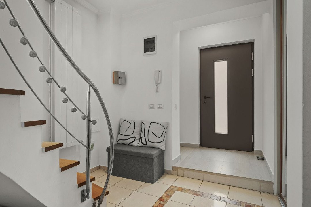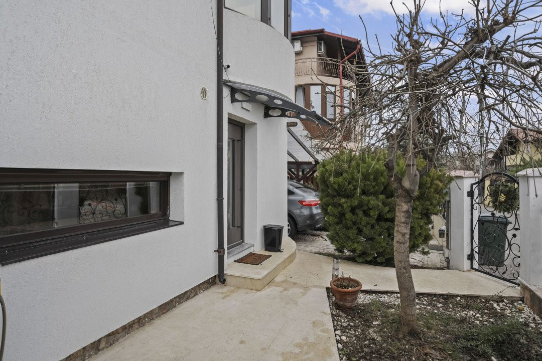 Va propunem spre achizitie o vila moderna, cu o locatie excelenta, intr-un mediu linistit si retras. Pozitia ei ofera un acces facil catre zona de Nord a Capitalei, fiind situata pe o strada linistita din zona Pipera cu intrare din Drumul Potcoavei, iar in imediata apropiere se regasesc scoli cu prestigiu (Scoala Americana, Scoala Britanica, Mark Twain, Scoala Franceza, etc.), dar si cel mai mare complex comercial din nordul Bucurestiului (Baneasa Shopping City, Metro, Carrefour, Mobexpert, Ikea, etc).