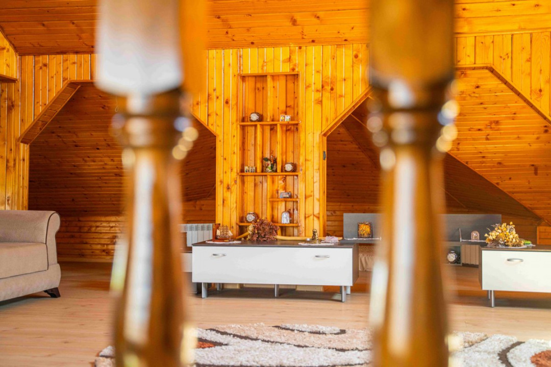 - Mansardă realizată integral din lemn de cireș, oferind un aspect deosebit și cald