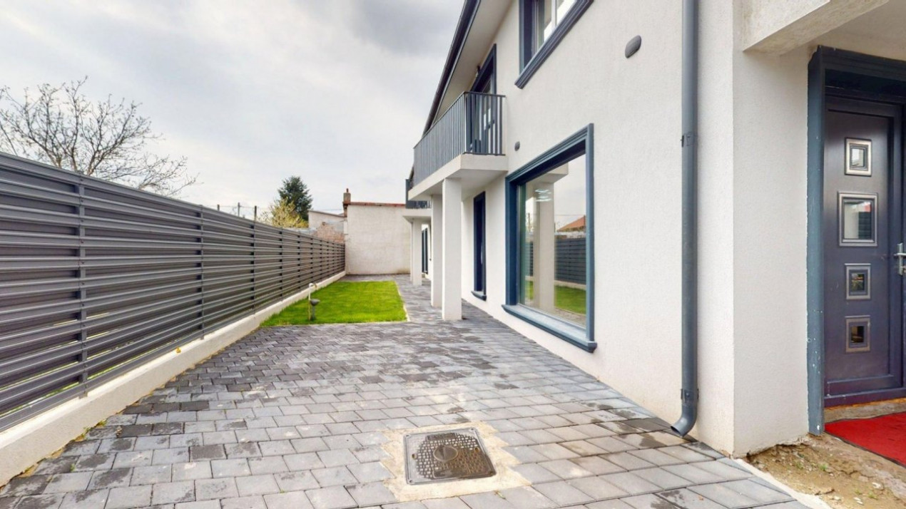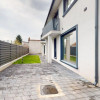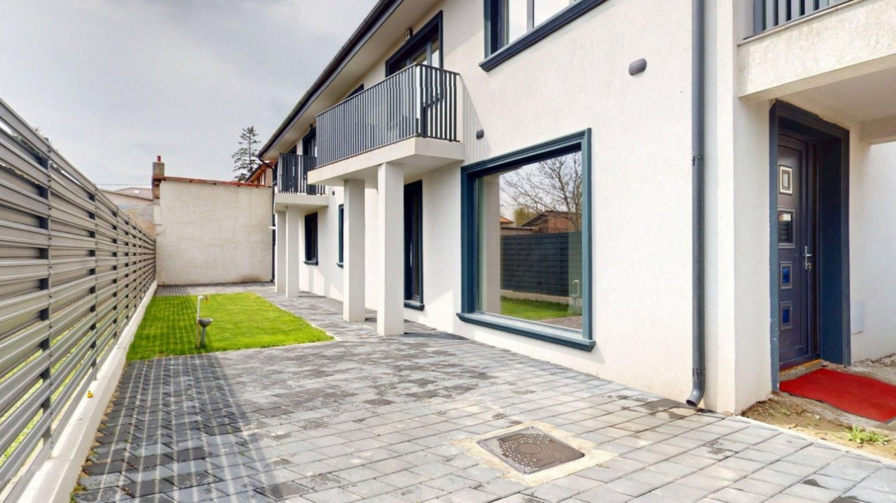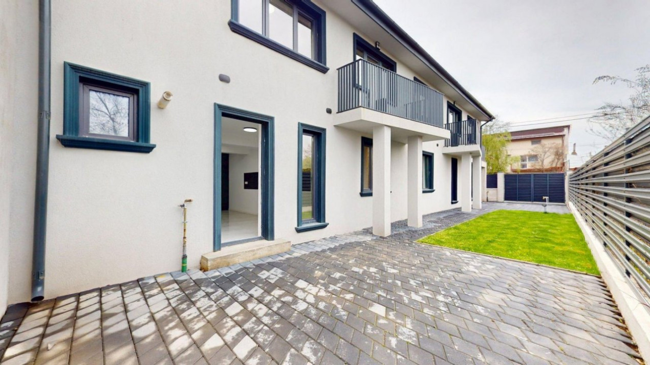 Terenul aferent are 249 mp, amprenta la sol a casei este de 158 mp, iar curtea liberă are 91 mp, parțial amenajată cu gazon.