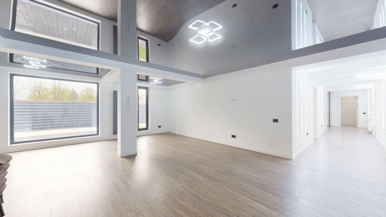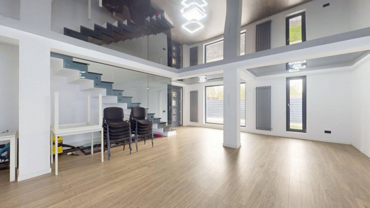 Locuința dispune de 7 camere, dintre care 6 dormitoare, bucătărie închisă, 3 băi, 2 balcoane și o terasă generoasă. Parterul include un living primitor, 2 dormitoare, o bucătărie spațioasă și o baie. La etaj se află 4 dormitoare, unul dintre ele cu baie proprie, plus o baie suplimentară.