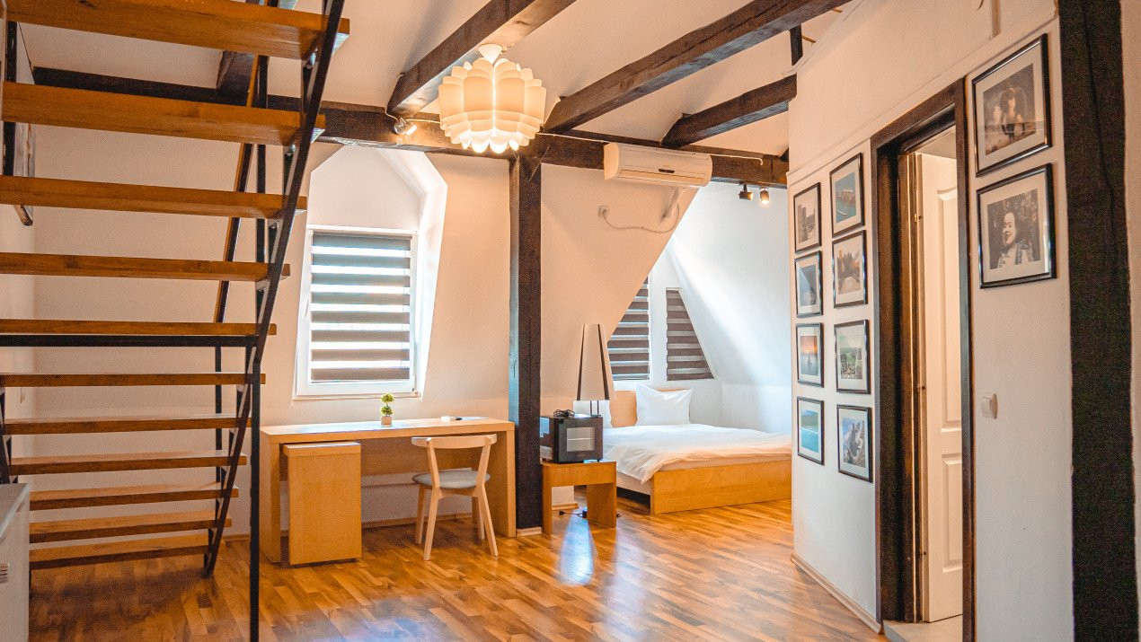 Pensiunea oferă 17 camere spațioase, dotate cu TV cu ecran plat, WiFi gratuit, minibar, uscător de păr și baie privată. Unele camere au balcon cu vedere la oraș sau la Munții Făgăraș. Camerele sunt împărțite în trei categorii: camere duble twin, camere duble matrimoniale cu balcon și camere duplex pentru patru persoane.