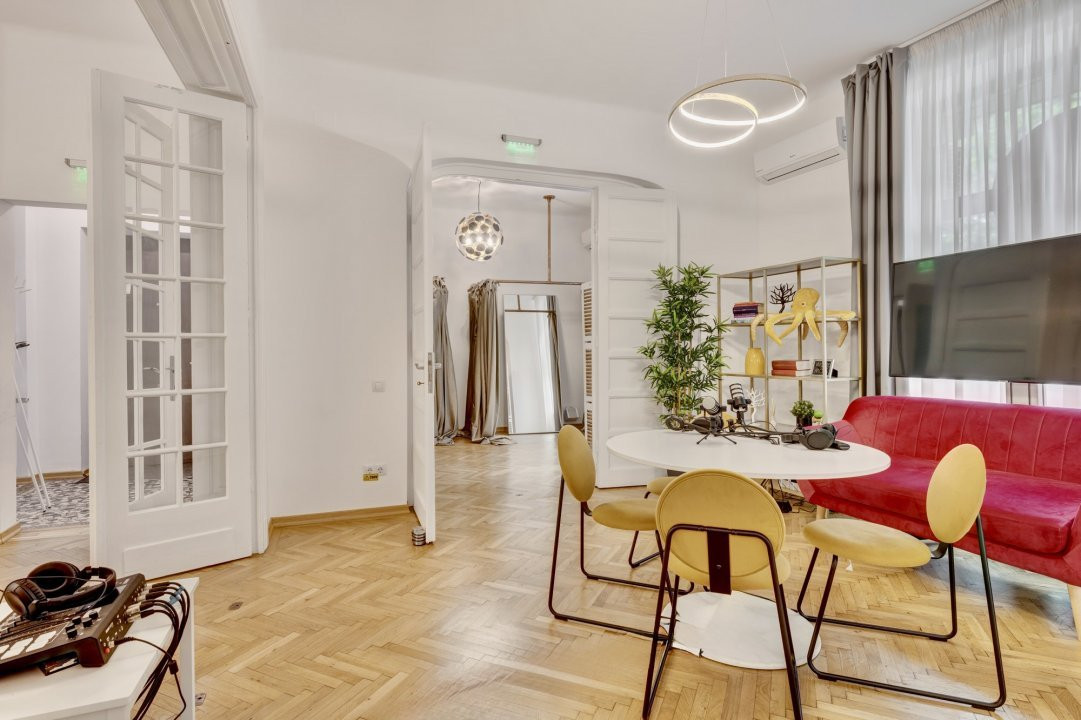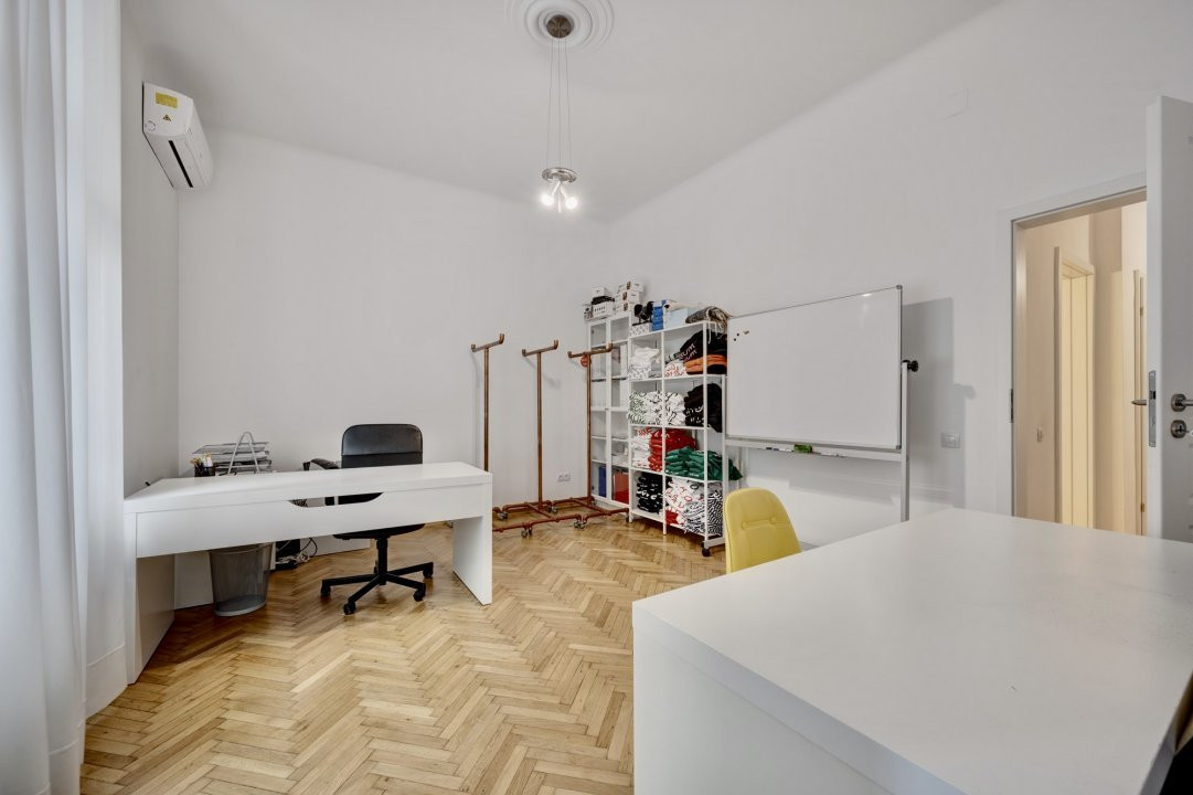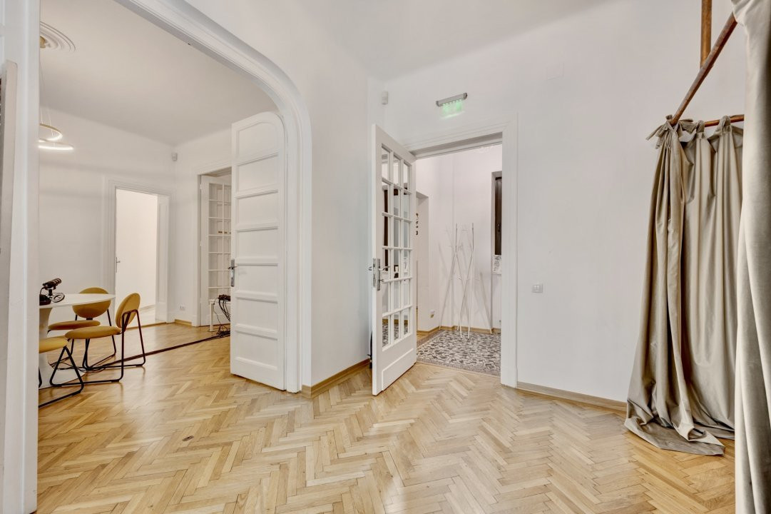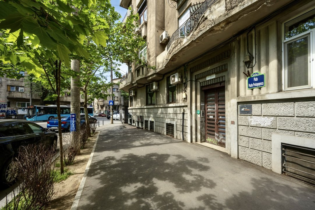 PIATA PACHE PROTOPOPESCU, SEDIU REPREZENTATIV, AMENAJAT LUX, 6 CAMERE, 127 MP! Poziție ultracentrală privilegiata (vedere chiar în rondul Izvorul Rece), foarte aproape de Piata Universității, accesibila ușor din orice zona a capitalei cu multiple mijloace de transport. Interior rafinat, cu elemente originale recondiționate, spații largi si înalte, bucătărie mobilata si utilata, multiple spații pentru depozitare. Spațiul, situat la parterul (înalt) al unui bloc interbelic emblematic, cu vizibilitate stradala si trafic pietonal, poate fi potrivit pentru notariat, cabinete avocatura sau consultanta, psihologie, showroom, magazin (online), firma evenimente, birou arhitectura, etc.