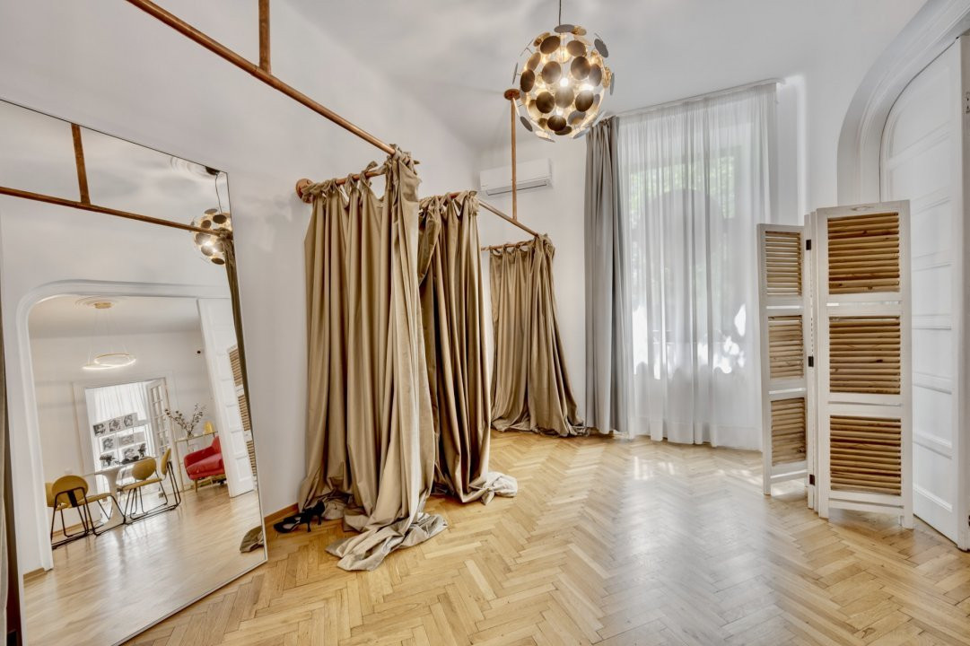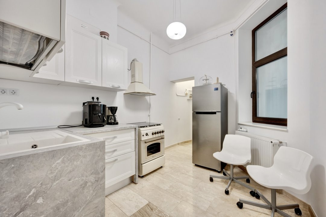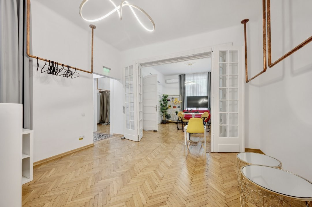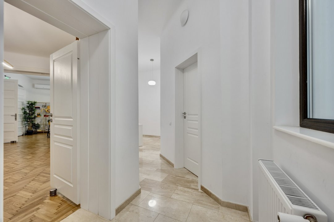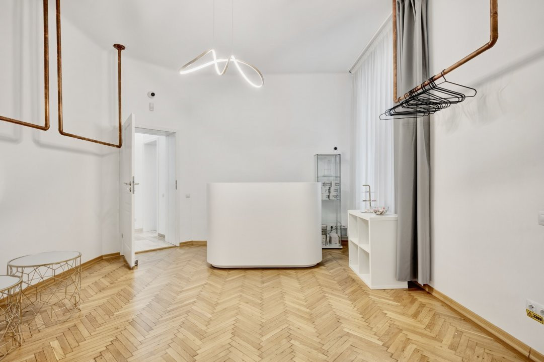 PIATA PACHE PROTOPOPESCU, SEDIU REPREZENTATIV, AMENAJAT LUX, 6 CAMERE, 127 MP! Poziție ultracentrală privilegiata (vedere chiar în rondul Izvorul Rece), foarte aproape de Piata Universității, accesibila ușor din orice zona a capitalei cu multiple mijloace de transport. Interior rafinat, cu elemente originale recondiționate, spații largi si înalte, bucătărie mobilata si utilata, multiple spații pentru depozitare. Spațiul, situat la parterul (înalt) al unui bloc interbelic emblematic, cu vizibilitate stradala si trafic pietonal, poate fi potrivit pentru notariat, cabinete avocatura sau consultanta, psihologie, showroom, magazin (online), firma evenimente, birou arhitectura, etc.