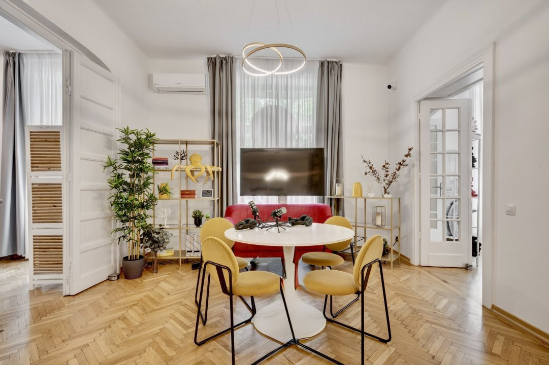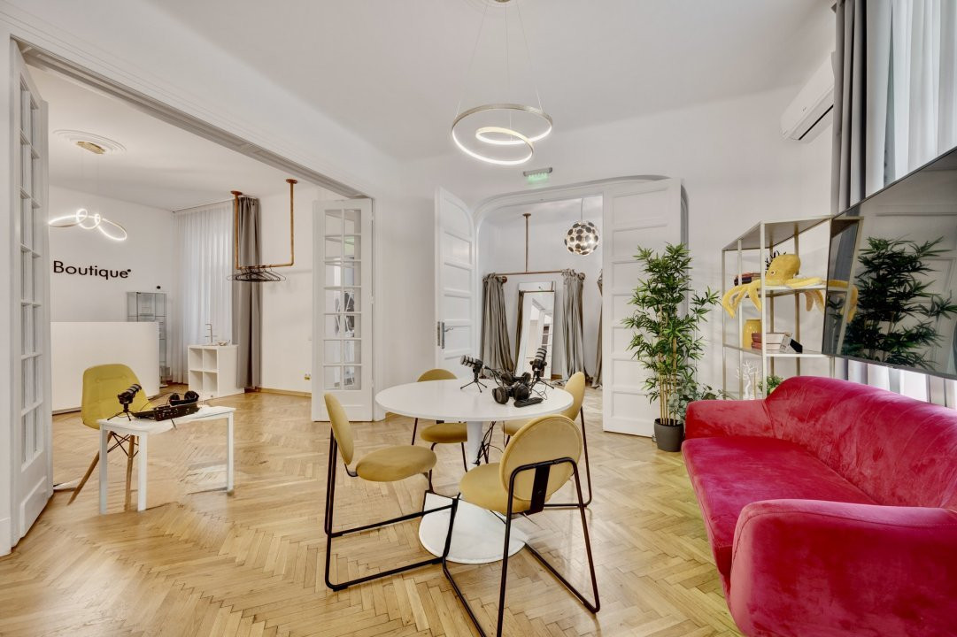 PIATA PACHE PROTOPOPESCU, SEDIU REPREZENTATIV, AMENAJAT LUX, 6 CAMERE, 127 MP! Poziție ultracentrală privilegiata (vedere chiar în rondul Izvorul Rece), foarte aproape de Piata Universității, accesibila ușor din orice zona a capitalei cu multiple mijloace de transport. Interior rafinat, cu elemente originale recondiționate, spații largi si înalte, bucătărie mobilata si utilata, multiple spații pentru depozitare. Spațiul, situat la parterul (înalt) al unui bloc interbelic emblematic, cu vizibilitate stradala si trafic pietonal, poate fi potrivit pentru notariat, cabinete avocatura sau consultanta, psihologie, showroom, magazin (online), firma evenimente, birou arhitectura, etc.