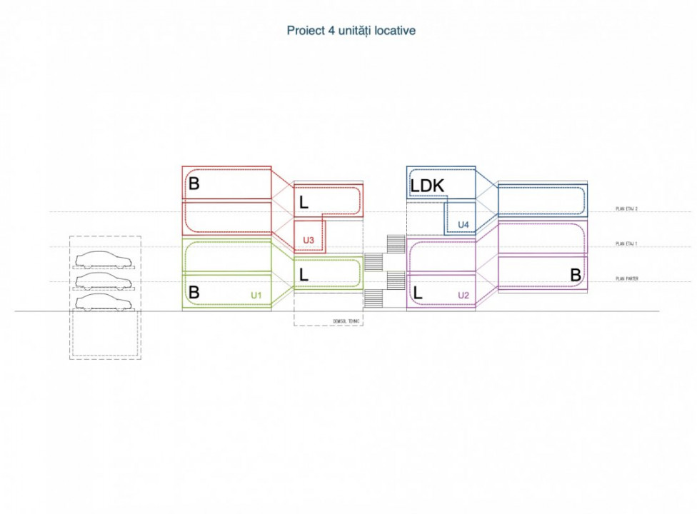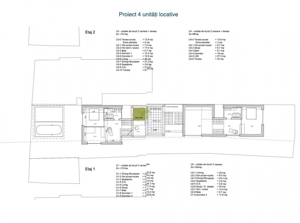 Proiect 4 unități locative, P+2E+M: